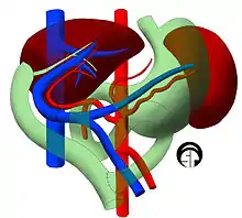 Before transplantation, liver-support therapy might be indicated (bridging-to-transplantation). Artificial liver support like liver dialysis or bioartificial liver support concepts are currently under preclinical and clinical evaluation. Virtually all liver transplants are done in an orthotopic fashion; that is, the native liver is removed and the new liver is placed in the same anatomic location.[8] The transplant operation can be conceptualized as consisting of the hepatectomy (liver removal) phase, the anhepatic (no liver) phase, and the postimplantation phase. The operation is done through a large incision in the upper abdomen. The hepatectomy involves division of all ligamentous attachments to the liver, as well as the common bile duct, hepatic artery, hepatic vein and portal vein. Usually, the retrohepatic portion of the inferior vena cava is removed along with the liver, although an alternative technique preserves the recipient's vena cava ("piggyback" technique).