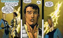During the Secret Invasion storyline, Living Lightning was with the Rangers when they, 3-D Man, and Ant-Man III were fighting a Skrull that was posing as Lobo.[26][27][28]