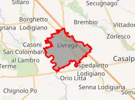 Livraga is a comune (municipality) in the Province of Lodi in the Italian region Lombardy, located about 45 kilometres (28 mi) southeast of Milan and about 14 kilometres (9 mi) southeast of Lodi. As of 31 December 2004, it had a population of 2,589 and an area of 12.2 square kilometres (4.7 sq mi).[3]