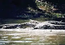 Mvuu Lodge ("mvuu" means "hippopotamus" in Chewa),[20] located on the banks of the Shire River, is the only lodge in the park, as of February 2015. The lodge, established in 1995, is operated by Central Africa Wilderness Safaris,[4][24] a company known for its sustainable practices and willingness to support local communities and conservation efforts.[12] Mvuu Lodge has a sister property called Mvuu Camp. Boat safaris provide guests with opportunities to view wildlife.[12] The lodge and camp employed 110 people, as of 2015, including: 14 guides, 4 mechanics (and a boat mechanic), 3 carpenters, 2 tailors, a builder, an electrician and assistant, and a shoemaker and has 56 beds as well as camp sites.[12][13] Previously, a second lodge, the Chinguni Hills Lodge, operated in the southern part of the park. Opened in 2000, this lodge had 44 beds plus camp sites and focussed on budget and mid-range markets in comparison with Mvuu's high end focus.[13]