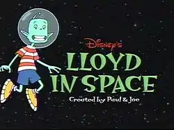 Lloyd in Space is an American animated television series, created by Recess co-creators Joe Ansolabehere and Paul Germain. It premiered on February 3, 2001, on ABC on Saturday mornings.[1] The pilot was written by Ansolabehere, Germain and Mark Drop, with the characters designed by Eric Keyes. The series ran for four seasons, airing its final episode on February 27, 2004.