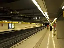 Llucmajor is a Barcelona Metro station, on L4. Part of the extension of that line from Guinardó into Nou Barris opened in 1982, it takes its name from Plaça de Llucmajor, the previous name of Plaça de la República, the central square of the district. The station is located under Passeig de Verdum, between carrer de Lorena and carrer de Formentor, and can be accessed from that intersection and from Jardins d'Alfàbia.