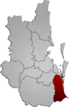 | Logan City | Logan Central | South East Queensland | 1978 | 958 | 300,545 | 326,615 | On 15 March 2008, Logan City expanded the northern part of the Shire of Beaudesert into its territory | ![]() |