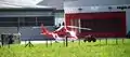 In the period from 1999 to 2007, the airfield command spent around 100 million Swiss francs. The infrastructure has been completely renewed. It has a large new hangar with solar power system in which all aircraft are housed, a private, enclosed runway with private taxiway to runway 26R/08L. Furthermore, the new Hangar 5 was established for the parascouts stationed there.
