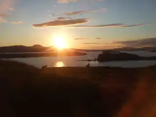 The loch contains four islands; Harlosh Island, Tarner Island, Wiay and the tidal island of Oronsay off Ullinish point.