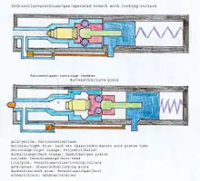 The photograph on the right is of a different type of locking system. This one is the Beretta Rotary locking system found in their PX Four Storm handgun. The next photograph on the left is of the CZ model 52 showing a roller locking system. Some sources describe this as a delayed blowback action but it is actually a locked breech.