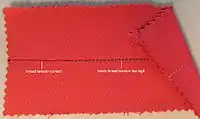 A lockstitch is the most common mechanical stitch made by a sewing machine. The term "single needle stitching", often found on dress shirt labels, refers to lockstitch.