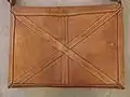 The loculus is thought to have measured about 45 by 30 centimetres (18 by 12 in) and was likely made from leather. It is the right size to be made in one piece from a single goat hide although calf leather is also possible. The bag is reinforced by diagonal straps. In the centre of the front of the bag these straps held a bronze ring with a mushroom-shaped stud that holds the triangular flap closed. At the top corners were two plain bronze rings used to suspend the bag while it is carried on a shoulder pole or furca.