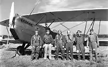 A 10/20/30 photo of MD National Guard 104th Observation Squadron pilots in front of one of the unit's O-11 Falcons at the unit's home station, Logan Field.