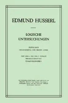The Logical Investigations comprise two volumes. In the German editions, these are Volume I, "Prolegomena to Pure Logic" (Prolegomena zur reinen Logik), and Volume II, "Investigations in Phenomenology and Knowledge" (Untersuchungen zur Phänomenologie und Theorie der Erkenntnis).[1][2]