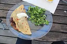Lokša (Slovak pronunciation: [ˈlɔkʂa]), Lokše (Slovak: [ˈlɔkʂe]; in Czechia regionally also lata, přesňák, šumpál or patenta; in Slovakia regionally also lokeš or lokoš) or their English versions Loksha and Lokshe is a type of potato pancake like flatbread popular in the cuisine of western Slovakia and southern Moravia. In South Moravia, lokše is also called wide noodles added to soups.