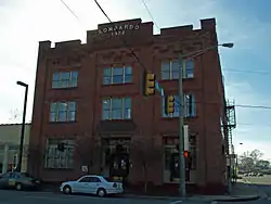 The Lombardo Building is a historic warehouse in Huntsville, Alabama. The three-story brick structure was built in 1922. The façade is divided into three bays by four piers. The center and right bays each have a double entry door with transom and sidelights, while the left bay contains a group of four one-over-one sash windows topped with a transom. Each of the upper floors has groups of three one-over-one windows. Each bay is topped with three decorative corbels, below a stepped parapet. The center of the parapet is marked with "LOMBARDO" and "1922".[2]