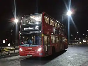 Upon being re-tendered, it was retained by Travel London with a new contract commencing on 2 December 2006.[3] Route 157 was included in the May 2009 sale of Travel London to Abellio London.[4][5] On 3 December 2016, Arriva London commenced operating the route after winning the tender with 18 existing Alexander Dennis Enviro400 double deckers.[6][7] The route is currently based at Norwood garage, however, drivers are allocated to Thornton Heath garage. This was due to Thornton Heath not having enough capacity available following route 64 moving there in August 2016.[1]