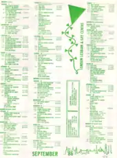 After looking at many buildings, the working group located a disused former meat warehouse near Smithfield market in Farringdon which could be suitably converted and this was purchased by the GLC. It opened unofficially in December 1984, with plans to include club/performance space, cooking and dining space, a bookshop, a daycare, a lounge and meeting room, a media resource centre, offices and other meeting spaces.[7] Plans were drawn up to convert the building to community use, with a club / theatre space in the basement, a bar and café on the ground floor with outdoor patio, and facilities for printing and photography on the first floor run by the Technical Resources Collective and who printed the Centre's monthly diary (alongside) and other leaflets. The second floor was designated as women only space and the third (top) floor was converted to offices for the Centre management team, with some rooms being leased to other organisations, such as PACE. All areas of the building had full disabled access via a small passenger lift serving all floors, a larger (formerly goods) lift serving all except the top floor, and a ramp at the rear between the café-bar and the courtyard area, which overlooked the train and tube tracks. Many LGBT organisations were allowed to use the centre for postal purposes, such as Presente, the Lesbian and gay solidarity group for Nicaragua. Many others used the meeting rooms for regular groups.