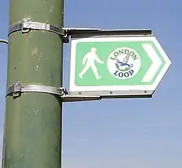 The London Outer Orbital Path — more usually the "London LOOP" — is a 150-mile (242 km) signed walk along public footpaths,[1] and through parks, woods and fields around the edge of Outer London, England, described as "the M25 for walkers". The walk begins at Erith on the south bank of the River Thames and passes clockwise through Crayford, Petts Wood, Coulsdon, Banstead, Ewell, Kingston upon Thames, Uxbridge, Elstree, Cockfosters, Chingford, Chigwell, Grange Hill and Upminster Bridge before ending at Purfleet, almost directly across the Thames from its starting point. Between these settlements the route passes through green buffers and some of the highest points in Greater London.