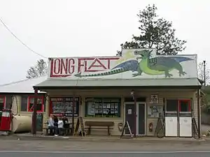 The Long Flat village has a class four primary school, hotel, community hall, recreation ground, tennis court and general store. Long Flat Public School has 36 students enrolled for classes Kindergarten to Year 6 in 2013. The 2011 census did not record Long Flat's population, however it shows that the population of the district including the localities of Kindee, Toms Creek, Ellenborough and Birdwood was 294. The Electoral district of Oxley records show that 296 people voted there in 2007.[1] Long Flat voting in the Division of Lyne recorded 286 voters who placed their votes in the village in 2007.[2]