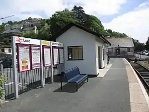 Looe railway station serves the twin towns of East and West Looe, in Cornwall, England. The station is the terminus of the scenic Looe Valley Line 8.75 miles (14 km) south of Liskeard. It faces out across the estuary of the River Looe.