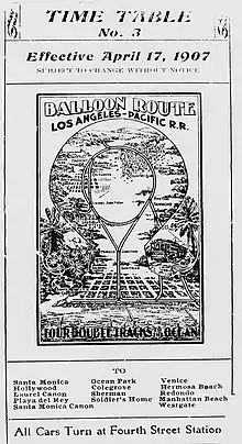 The Balloon Route Trolley trip was a featured excursion of the Los Angeles Pacific, and opened in 1901. Beginning in November, 1904, Charles Merritt Pierce, the original owner of the Glen-Holly Hotel, Hollywood's first hotel, operated the line for the LAP.[37]