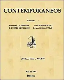 Los Contemporáneos (which means "The Contemporaries" in English) can refer to a Mexican modernist group, active in the late 1920s and early 1930s, as well as to the literary magazine which served as the group's mouthpiece and artistic vehicle from 1928 to 1931. In a way, they were opposed to stridentism.
