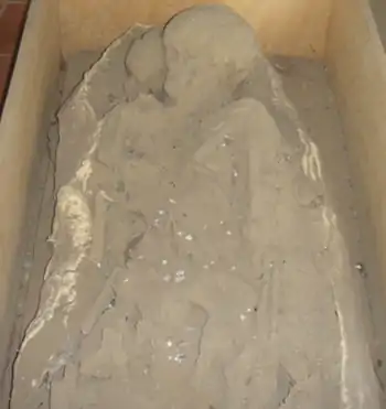 Osteological analysis leads to infer that these were real families or that have a kinship as in the case of the urn number 5, a man, a woman and infant human remains were found had no clothes, probably related to common society members that were buried in a collective burial or a mound.