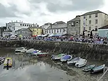 BBC weather forecasts for the Cornwall area, broadcast the previous evening and earlier that morning, were discouraging; all promised increasing winds, up to Force 7, with the probability of rain from midday. Such weather conditions could produce heavy seas and poor visibility.[23] Nevertheless, Darlwyne set out from Mylor shortly after 10:00 am in pleasant sunshine, expecting to return before 7:00 pm. The journey to Fowey, which included a slight detour to view Mevagissey harbour, was completed without incident, and the party arrived in Fowey just after 1:00 pm. By this time the weather had deteriorated, and it was raining heavily. Bown did not tie up to the main town quay – he was heard saying that the vessel was "a bitch to handle" – and anchored mid-harbour, again using the dinghies to land the party.[24]