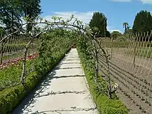 The northern part of the gardens, which includes the main ornamental and vegetable gardens, are slightly higher than the house and slope gently down to it. The areas of the gardens to the west, south, and east of the house slope steeply down into a series of valleys that ultimately drain into the sea at Mevagissey. These areas are much wilder and include the Jungle and the Lost Valley.[2]