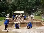 Tin Mining in Peninsula Malaysia was practised for hundreds of years, the orang Asli & Malays being the first miners, then came the Siamese and Mandailings followed by the Chinese immigrants who were mostly Cantonese and Hakkas. Towns like Ipoh, Kampar and Tambun have rich tin mining history.[11] The Lost World Tin Valley is a limestone cave with authentic tin mining artifacts and provide educational journey back to the tin mining past. |