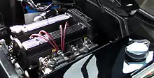 The Big Valve Twin Cam was a project of Lotus' Engineering Director Tony Rudd.[1] Rudd reduced the deck height by 0.04 in (1.0 mm) to raise the compression ratio to 10.5:1, increased the diameter of the inlet valves to 1.565 in (39.8 mm), modified the inlet runners' shape for the larger valves and installed Super Special Equipment D-type camshafts. Power was increased 20% over the regular engine's 105 to 126 hp (78.3 to 94.0 kW). Big Valve engines were offered in the Elan Sprint, Elan +2 130, and Lotus Europa Twin Cam Special models.[12][13]: 28 Cam covers for Big Valve engines had the words "Lotus" and "Big Valve" cast in raised letters across the front of the cam cover. The portion of the cover over the camshafts had raised ribs cast in.