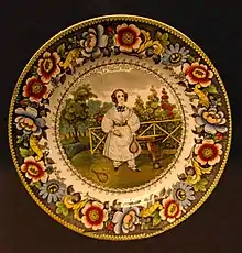 Lebeuf was director of the Creil-Montereau faience works for the Société Lebeuf et Millet from 1840 until his death. The trademark was "LM et Cie".[1] Lebeuf purchased the château and estate of Montgermont at Pringy, Seine-et-Marne, and was ennobled.[1] The Association pour la défense du Travail national was formed to oppose the lowering of tariffs.[3] The council included Antoine Odier (President), Auguste Mimerel (Vice-President), Joseph Périer (Treasurer) and Louis-Martin Lebeuf (Secretary). Members included Henri Barbet, Léon Talabot and Eugène Schneider.[4]