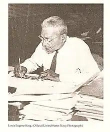 Louis Eugene King was one of, if not the first anthropologist who covered the African American communities in the United States. During the time that he was studying the black communities, it was more accepted to study Native American culture, as it was looked as a higher form of study than black culture.[12] He wanted to write objectively write about black community and family. He also focused on whether northern blacks were smarter than southern blacks, which is what popular belief indicated, that nature controlled intelligence. But he found through his studies that northern blacks didn't necessarily score better, but that intelligence was based on the environment of which the individual was raised in. This is all covered in his dissertation which was called "The Negro Life in Rural Community".[13]