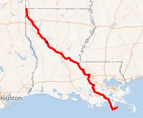 Louisiana Highway 1 (LA 1) is a state highway in Louisiana. At 431.88 miles (695.04 km), it is the longest numbered highway of any class in Louisiana. It runs diagonally across the state, connecting the oil and gas fields near the island of Grand Isle with the northwest corner of the state, north of Shreveport.