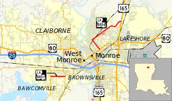 Louisiana Highway 840-6 (LA 840-6) spans 3.93 miles (6.32 km) from south to north and is known as North 18th Street and Forsythe Avenue. From the west, LA 840-6 begins as a state highway at an intersection with US 80/US 165 Business in Monroe. It heads north as a four-lane highway. The roadway south of this intersection is signed as TO I-20, and is known as North 18th Street.