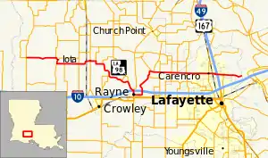 | East end | Lafayette–St. Martin parish line east of Carencro | |||
