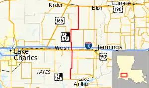 Welsh11.75118.911 US 90 east (East Russell Avenue) JenningsSouth end of US 90 concurrency