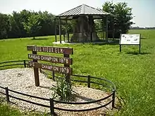 About three miles east of Louisville was the Vermillion Crossing of the Oregon Trail operated by Louis Vieux. Vieux is buried in the Vieux Family Cemetery on top of a hill. Nearby, on the banks of the river, is a cholera cemetery from 1849, which is estimated to contain at least fifty graves, although only two stones — both native sandstones — remain. The Louis Vieux Elm Tree is across the river and is estimated to be over 300 years old. The tree had been afflicted with Dutch elm disease, a lightning strike and vandalism and efforts were taken to protect and shelter the tree's stump. In August 2011, the stump was destroyed by fire.[9] Near the tree are the graves of seven unknown soldiers.