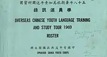 The Study Tour program was started in 1967 by the China Youth Corps.[3] According to the Chinese Canadian Archive,[4] the original name of the program was the "Overseas Chinese Youth Language Training and Study Tour" and was initially promoted across North America through various local Chinese newspapers by Chinese North Americans with relations to the Kuomintang party. The primary goal of the program was to acquaint, or re-acquaint, young people of Chinese descent living in other parts of the world with Chinese culture and language. Thus, participants take brief courses in language and arts, attend lectures, and take scenic tours of Taiwan. This however, is the popular perception of the program. The alternate and original purpose for the Taiwan Government's subsidizing of the program was to shore up Overseas Chinese support for its cross-strait political policies, particularly those of the Kuomintang (KMT) party in regards to its tense relations with China. Accordingly, participants were to attend lectures on cross-strait relations which others might perceive as propaganda. The program was conceived by the Taiwan Government in part because the Kuomintang for many decades had recognized the historical importance of the Overseas Chinese community not only for its financing but also for its political support.[5] In fact Dr. Sun Yat-Sen,[6] the founder of the Kuomintang as well as the Republic of China (1912–1949), recognized early the importance of Overseas Chinese support[7] and went as far as to say that "Overseas Chinese are the Mother of the Revolution.[8]" However, beyond the political origins of the Study Tour, the program is most famous for its historically positive influence on Chinese American identity in addition to its "Loveboat" reputation of spawning many relationships as well as hosting a frenetic nightlife scene which many participants indulged in.
