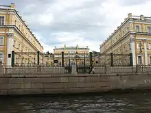 The society began meeting as early as 1807, but its regular monthly meetings began in March 1811 in "a beautiful and luxuriously appointed hall in Derzhavin's large home on the banks of the Fontanka"; as many as 500 people might attend its meetings, and it published its own journal, the Chteniya v Besede lyubitelei russkogo slova (Readings at the Colloquy of Lovers of the Russian Word), whose nineteen issues consisted mainly of material presented at the meetings.[1] It was controlled by conservatives like Derzhavin and Alexander Shishkov who opposed the liberal reforms of Alexander I; in literary terms, it sought to ban gallicisms and other foreign infiltrations from the Russian language and looked to Church Slavonic and folk traditions to create an acceptable culture. It was opposed and mocked by the progressive Arzamas Society. It dissolved after Derzhavin's death in 1816, but was revived as a literary and scholarly society at Moscow University from 1858 to 1930; among the writers speaking at its meetings were A. K. Tolstoy, Ivan Turgenev, Afanasy Fet, Fyodor Dostoevsky, Leo Tolstoy, and Ivan Bunin.[2]
