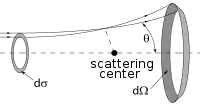 As shown at right, represents a finite region for an incoming particle, while represents the solid scattering angle after the scattering event. However, for LEIS is typically unknown which prevents such a clean analysis. Additionally, when using noble gas ion beams there is a high probability of neutralization on impact (which has strong angular dependence) due to the strong desire of these ions to be in a neutral, closed shell state. This results in poor secondary ion flux. See AISS and TOF-SARS below for approaches to avoiding this problem.