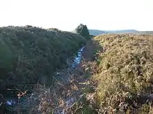 The earliest historical sign of settlement in the Bradfield area is an early to mid Bronze Age ring cairn on Broomhead Moors, three miles to the northwest of Low Bradfield. This is believed to be a ritual or burial site from over 4,000 years ago.[1] On the ridge between Bradfield Dale and the Ewden Valley is the Bar Dike, a 492 yards long trench with a rampart on its southern side which is 10 feet high in places. The dike is believed to have marked the boundary between different Dark Ages tribes in the period following the withdrawal of The Romans from Britain.[2]