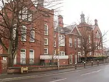 Also a Grade II listed building is the Wesley Memorial Methodist Church.[86] Built on a steeply sloping site on Durham Road in 1882 and opened in January 1883,[87] this church is a "pleasing and individual adaptation of early Gothic design", built in tooled sandstone with Welsh slate roof–tiles.[88] There are two further churches in the suburb. These are Denewell Avenue Church and St Peter's. The former was a presbyterian church - now United Reformed Church, located on the corner of Denewell Avenue and Dryden Road which was formed originally in 1907 when a wood and corrugated iron building was erected on a site purchased for £480.[89] This building was soon demolished and replaced with a new building which opened on Good Friday, 10 April 1914.[90] St Peter's, meanwhile, is a Roman Catholic located on Kells Lane which opened in 1962.[91]