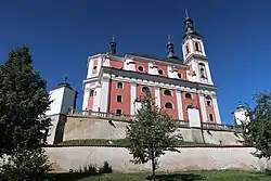 The Pilgrimage Church of the Virgin Mary on the hill Chlumek was founded by Countess Mary Maximiliana Eva of Žďár. She had built the church at her own expense. It was built in the Baroque style in 1690–1695.[7]