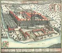 The monastery was founded by the Silesian Duke Bolesław I the Tall, who had the monastery foundation charter drawn up in 1175. However, as early as 1163, monks from the Cistercian Abbey of Pforta arrived in Lubiąż and founded the new monastery on the then densely wooded bank of the Oder where it is now situated. Lubiąż developed into the most important monastery in Silesia and played a significant role in the settlement and development of Silesia. From here, seven more monasteries were founded in Poland by 1256.[2][3]