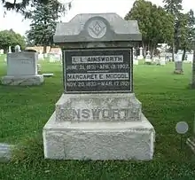 He died in West Union, Fayette County, Iowa on April 19, 1902. He is buried in the West Union Cemetery, lot 155 [12] along with his Wife Margaret E. McCool Ainsworth.
