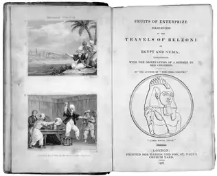 - Fruits of Enterprise Exhibited in the Travels of Belzoni in Egypt and Nubia (London: J. Harris and Son, 1821)