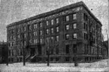 The building faced 130 feet (40 m) on North Capitol Street, and was 80 feet (24 m) deep on the M Street front.[3] Rust Hall was a five-story structure. It contained 115 rooms, of which 15 were for public use. The building accommodated 100 people and provided modern appliances. It was heated by hot water and lit by electricity generated by its own engines and dynamos. It was furnished with elevator and iron stairways. A telephone system connected the institution with the main office. Henrietta A. Bancroft served as chairman of the building committee. Charles W. Gallagher was treasurer and president of the National training school when the building opened.[4]