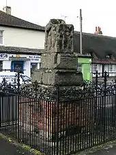 The remains of a Medieval preaching cross known as Ludgershall Cross are situated in the town centre. This is also under the care of English Heritage.[11] It was re-erected some time in the early 19th century in the area that formed the old market place, near the present Queen's Head pub at the end of High Street. It is some 12 feet in height and in 1897, to celebrate the Diamond Jubilee of Queen Victoria, an ornamental iron fence was erected around the cross. The cross has carved representations on four sides but they are badly eroded. It is thought the original sculptured panels represented: