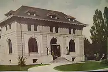 At a city meeting on February 6, 1905, the city approved the plans for a two-story building that would utilize Carnegie's funds.[11] The building was designed by Edward Lippincott Tilton, who was recommended by Carnegie.[11] The building was to have reading rooms, cloak rooms, and a lecture room on the second floor.[11] The Ludington Carnegie library building was declared as the library that will "stand a thousand years."[12]