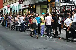 In the early 1980s, Ludlow Street was well known as a street where no wave Colab artists connected with ABC No Rio lived; such as Kiki Smith,[10] Fab Five Freddy, Coleen Fitzgibbon, Tom Otterness, Wolfgang Staehle, Steven Parrino, Joseph Nechvatal, Peter Fend, Walter Robinson, Aline Mare, George Condo and art critic Carlo McCormick. In 1980, Coleen Fitzgibbon made a video called Ludlow about Ludlow Street.[11] From 1983 to 1989, the bimonthly cassette publication Tellus Audio Cassette Magazine was based out of 143 Ludlow Street. Leonard Abrams started the East Village Eye cultural magazine at 167 Ludlow Street. In 1989 the Beastie Boys used a photo of the southwest corner of Ludlow and Rivington Street as the cover for their album Paul's Boutique.[12] In 2015, Mitch Corber created a short documentary video called Ludlow Street with Clayton that features Clayton Patterson walking down the street, discussing its cultural demise due to gentrification.[13] Wolfgang Staehle presented an extended digital photographic record of Ludlow Street in his exhibition at Postmasters Gallery in 2016/2017.[14] From 2004 to 2009 the performing and visual arts space Collective:Unconscious was located at 145 Ludlow Street. In 2009, the School of Visual Arts established its Ludlow Residence at 101 Ludlow Street, which houses 350 art students. The notable music club Luna Lounge, an instrumental venue that help usher in what became a new millennial wave of guitar bands like The Strokes, Interpol and The National, was located at 171 Ludlow Street from 1993 until 2005. [15]