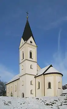The Neo-Romanesque parish church of the Sacred Heart built in 1893/94 to plans by Johann Baptist Schott. It has a unique Neo-Romanesque décor by Munich artist, Franz Xaver Hofstötter (1871–1913). An unusual feature is the rich painting of the interior rooms.