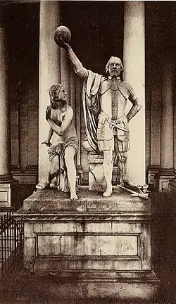 The Discovery of America, was a figure group nearly five meters high including a statue of Christopher Columbus brandishing a globe and a statue of Indian. This monumental marble group was directed by Persico in Florence, 9 from 1840, and May 17, 1844 placed to the left of the stairs of the portico. The Discovery of America received mixed reviews from critics and the press, particularly because of the nudity of the female character (criticized, for example, in the Baltimore Sun).